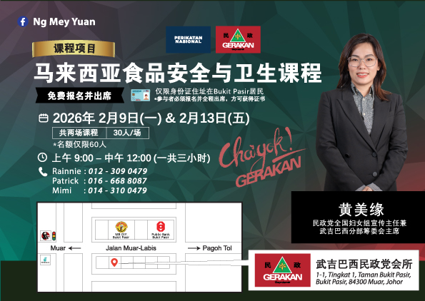 马来西亚食品安全与卫生课程|免费报名出席📍 仅限武吉巴西居民